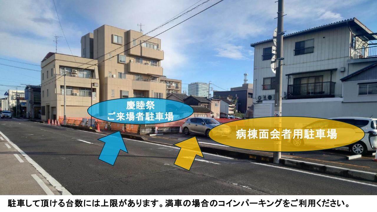 企画当日の駐車場は限りがありますのでできる限り徒歩・公共交通機関でご来院ください。(患者さん駐車場は病棟面会者用駐車場として運用します。)